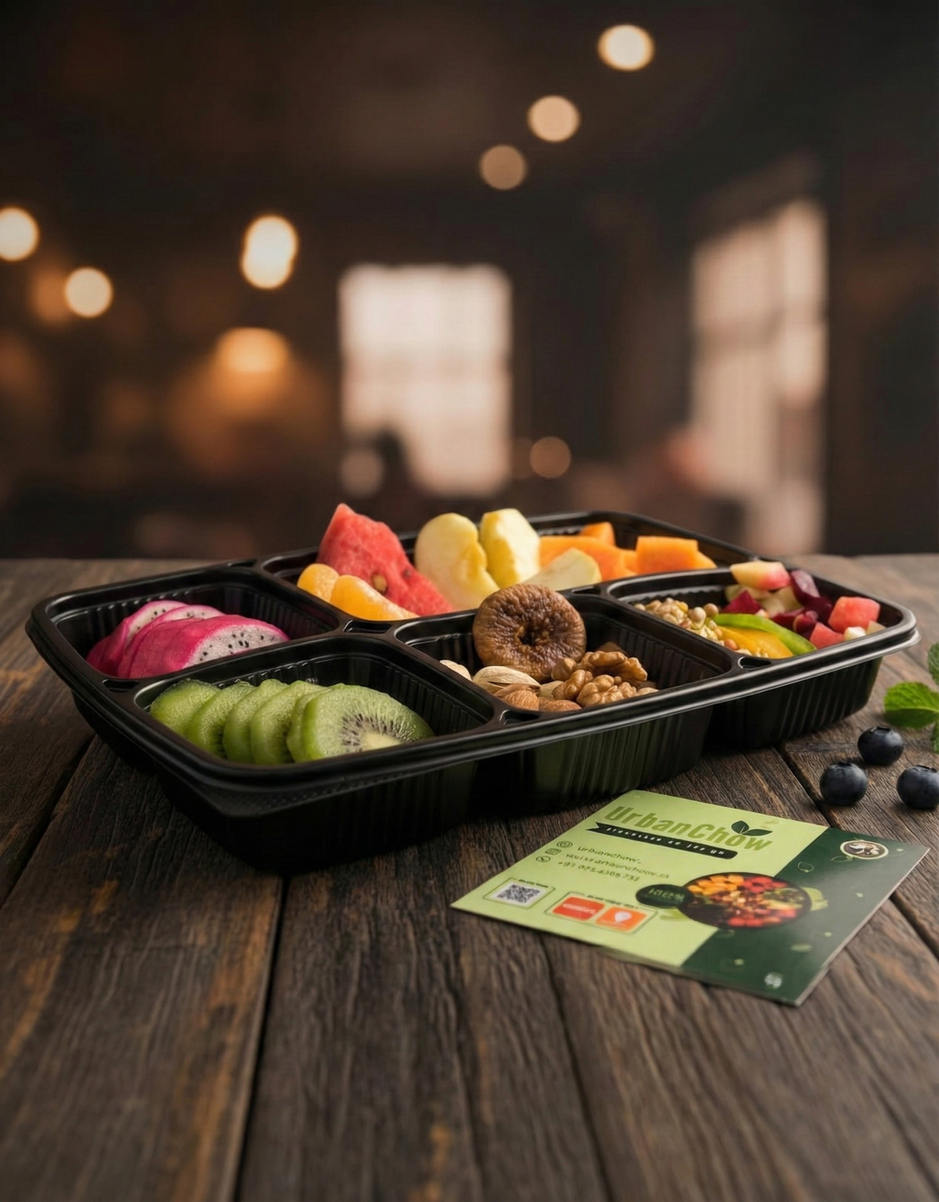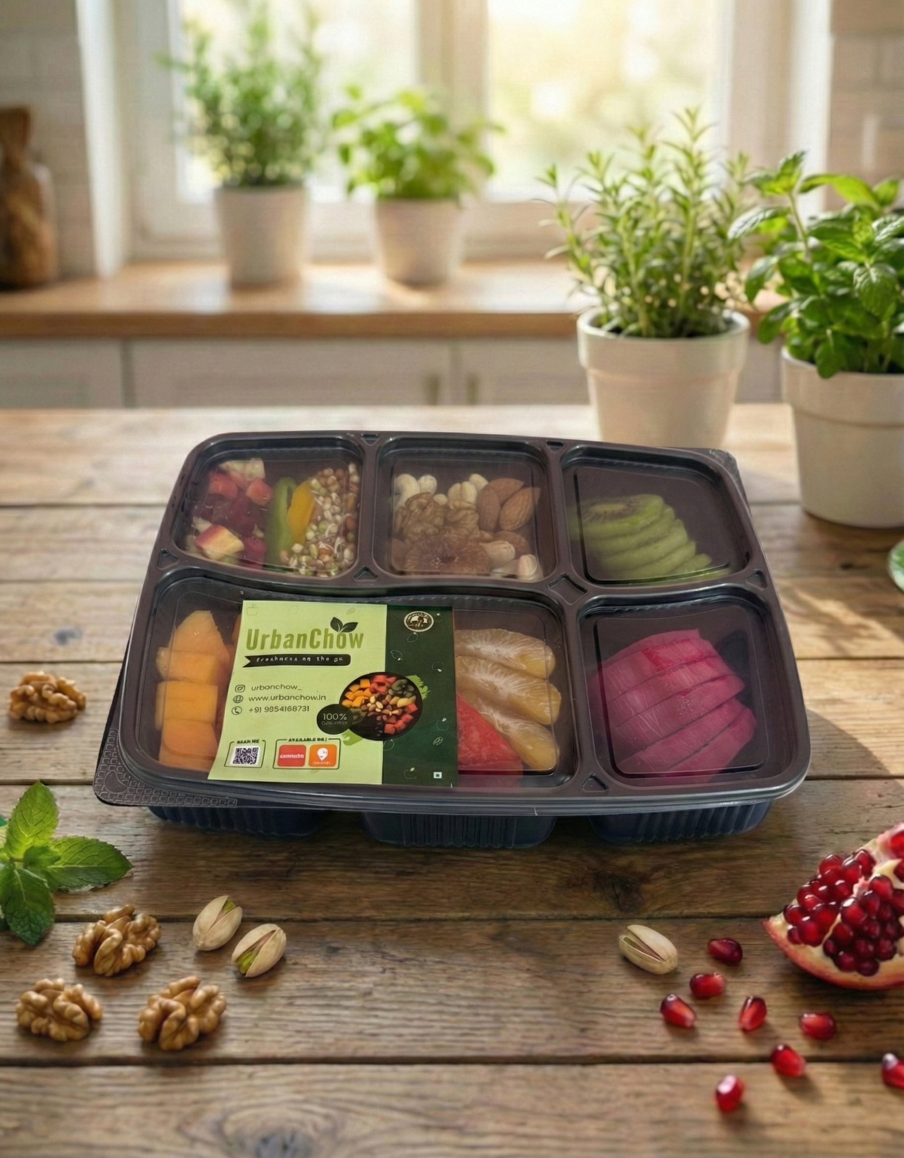 - Fruit Base (4 Varieties): A mix of 2 Seasonal fruits (e.g., Apple, Papaya) + 2 Exotic fruits (e.g., Kiwi, Pineapple).